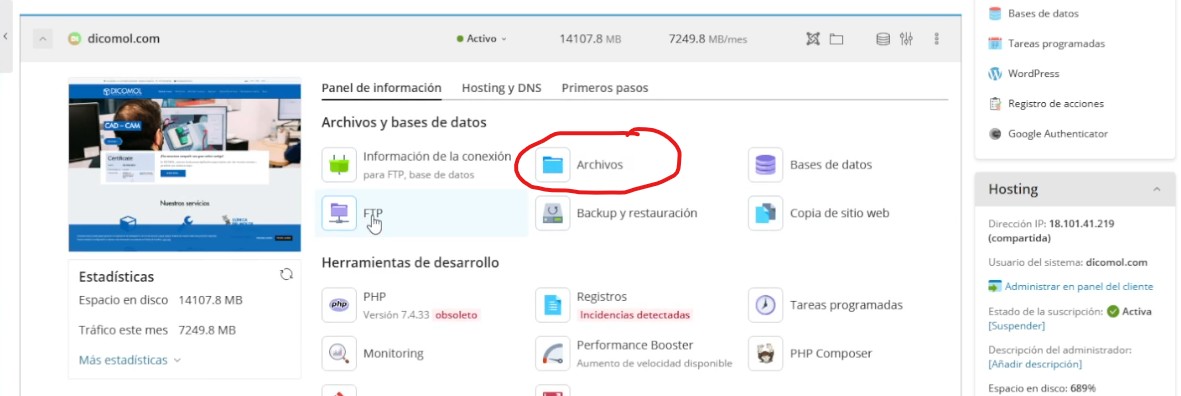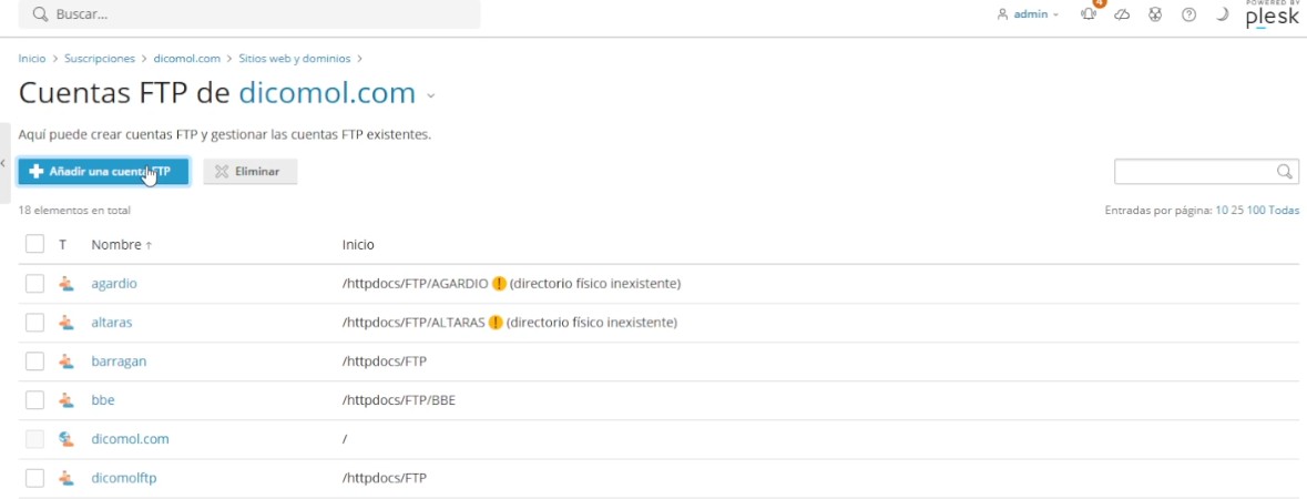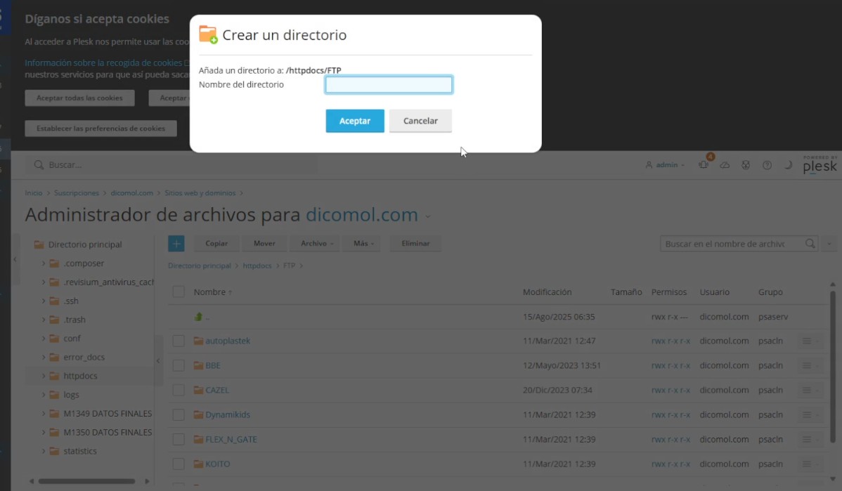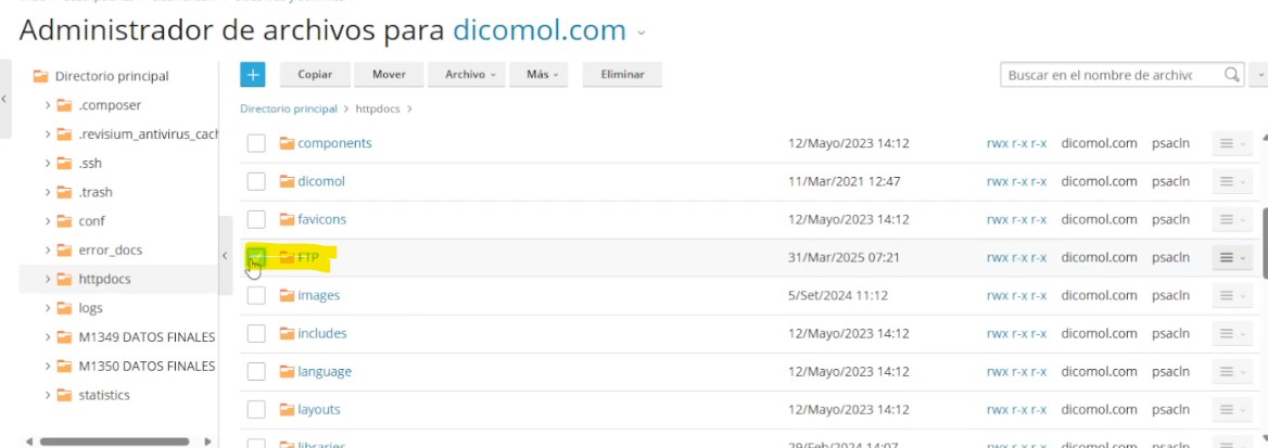 - Seleccionamos directorio principal » dentro de httpdocs \FTP\ carpeta creada»