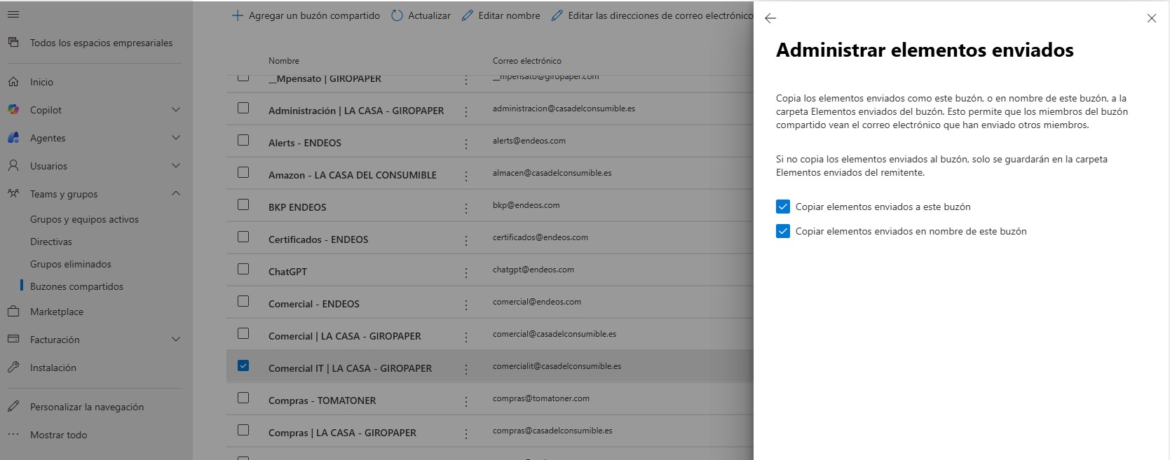- Marcar «Copiar elementos enviados en nombre de este buzon»
